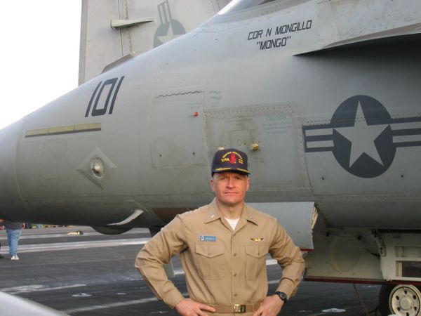 Mongo went on to fly a total of 25 combat sorties during Operation DESERT STORM. He returned to the Mideast in 1998 and supported Operation SOUTHERN WATCH enforcing the no-fly zone over southern Iraq. In 2006, he returned to the Mideast for the 3rd time and Commanded the "Redcocks" of VFA-22, an FA-18 Super Hornet squadron, and supported Operation IRAQI FREEDOM and the Global War on Terror.